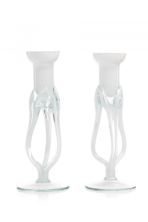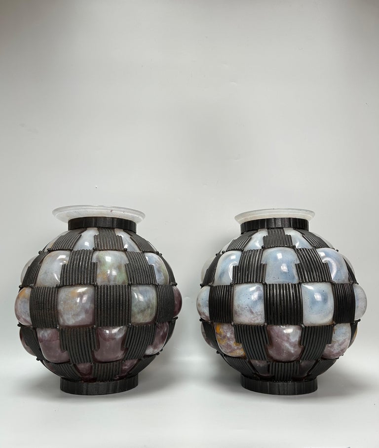 (2) MADO - NANCY Pair of painted marmorated glass vases with ...