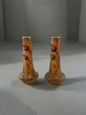 (2) MADO - NANCY Pair of painted marmorated glass vases with flower motifs Weight: 2.20 kg Shipping unavailable Region: France Sizes: H 305 MM L 100 MM ...