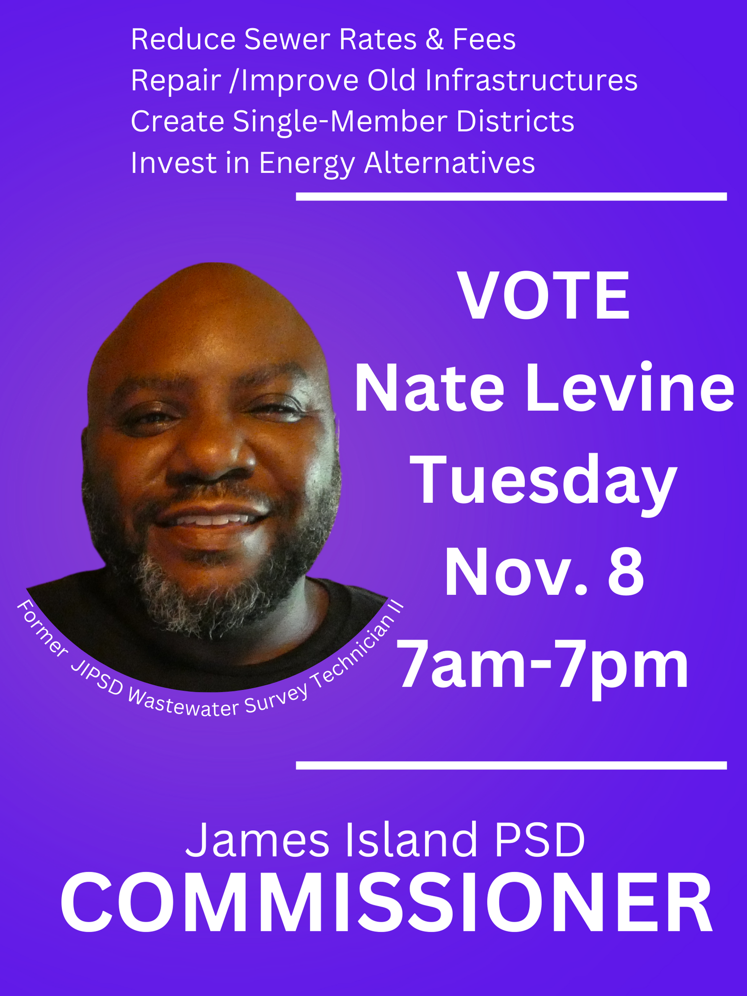 Nate Levine for James Island Public Service District in Charleston, SC. Levine is a former employee of James Island Public Service District.