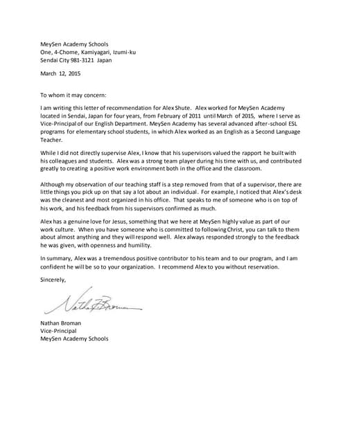 Recommendation Letter Nathan Broman by Alex Shute, has 1 slides with 303 views.