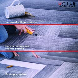 U-Tile™ Modular Nelson Peat 10 x 40 Carpet Tile (21.53 sq.ft/ctn) · 100% Velana Olefin · High performance PVC backing · Quarter turn, brick lay, or standard tile ...