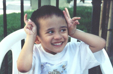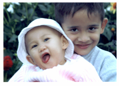 with brother Nick, Elmo, and The Two-Headed Monster.