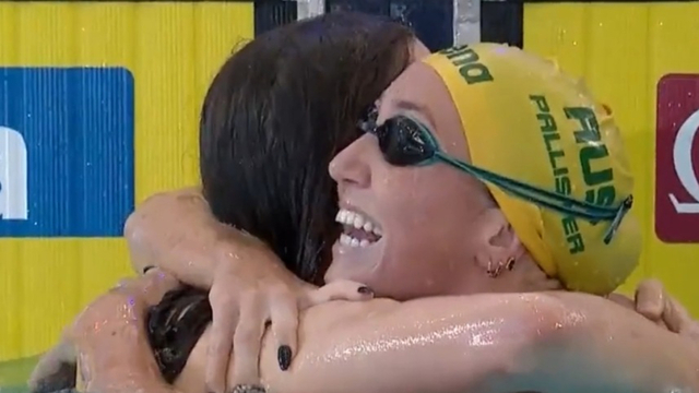 Jess Fox leapt into the water to salute her sister Noémie, so often in the shadow, now with a golden lustre all of her own