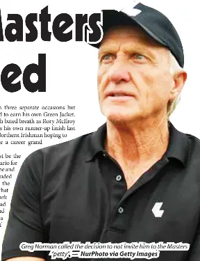 Norman -- a three-time runner-up in the tournament -- has not been at the Masters since 2021, when he attended as a radio analyst for Sirius XM.