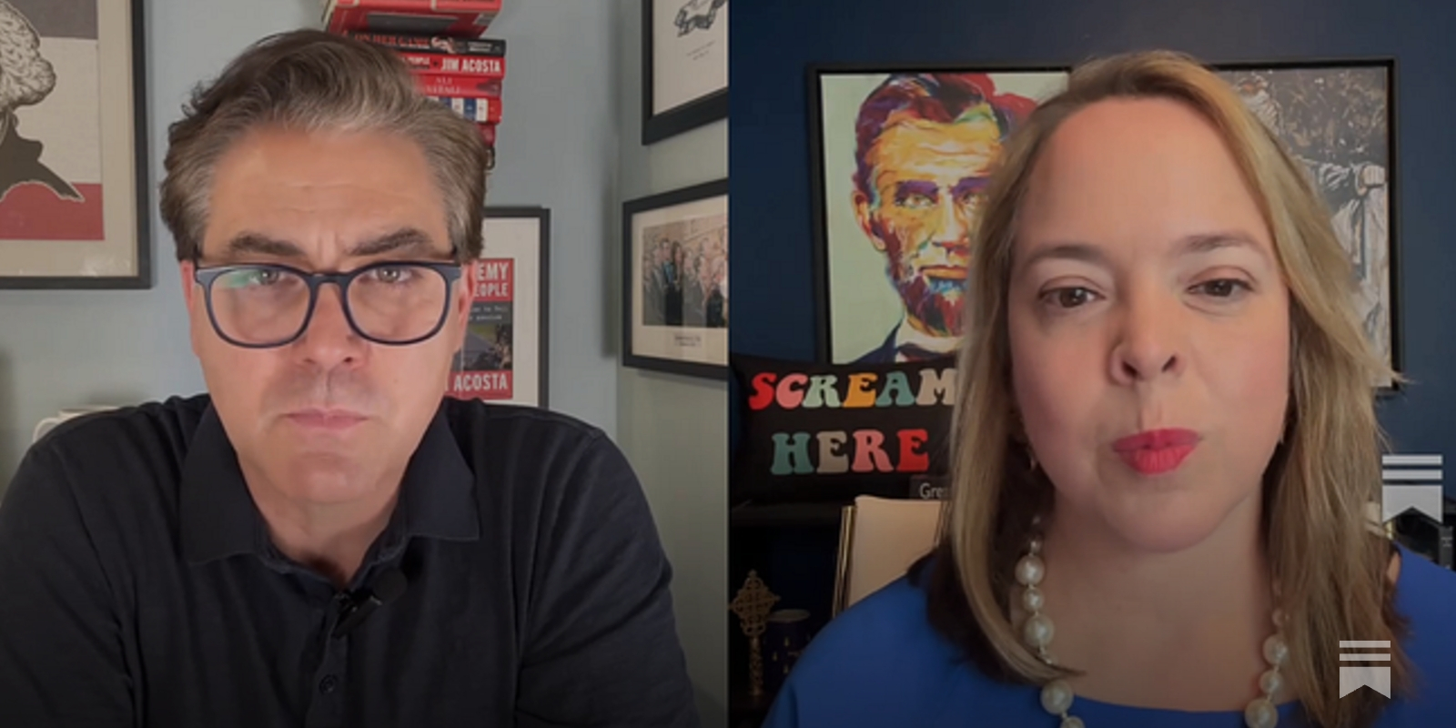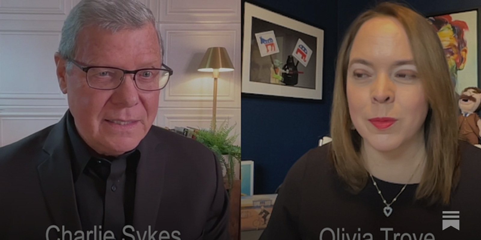 Olivia Troy speaking to a camera against a black backdrop. “It was shocking to see the President saying that the virus was a hoax, saying ...