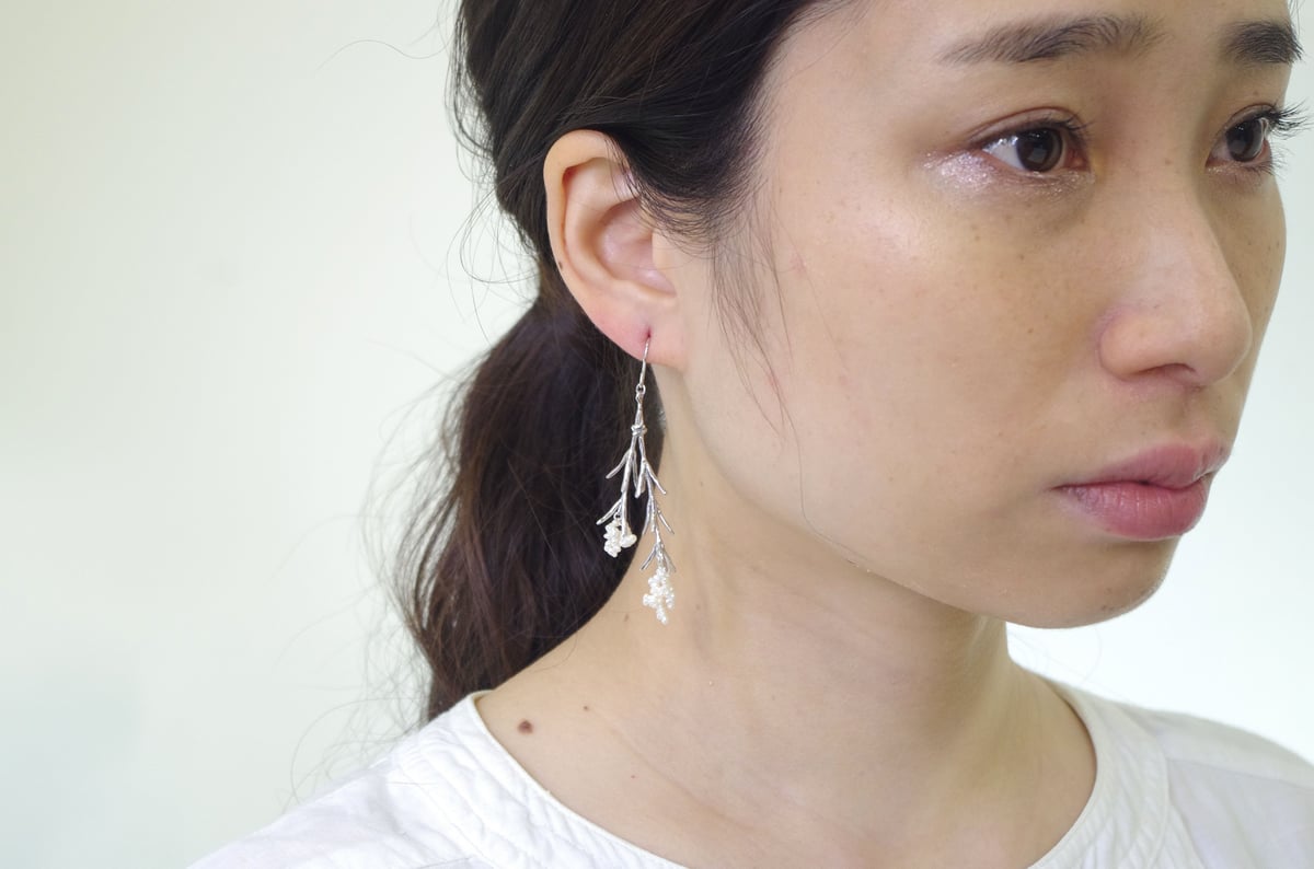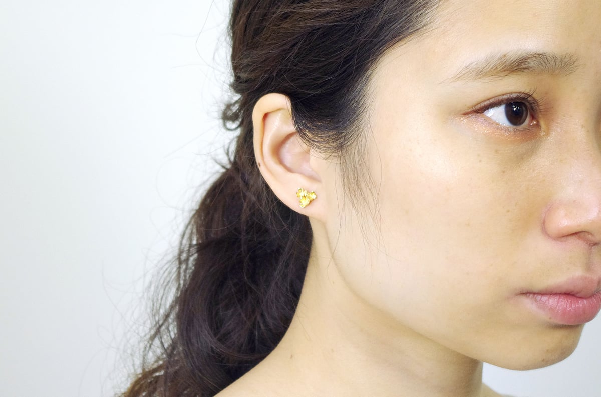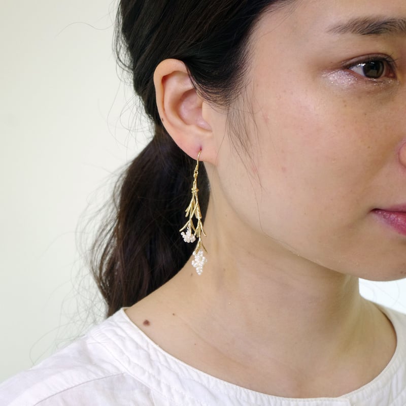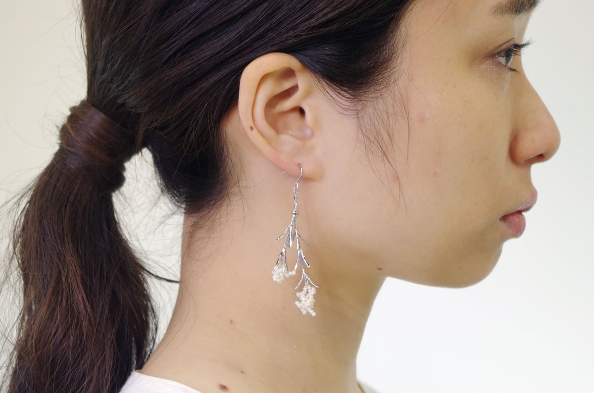 tint series Pansy/Pierce S Mimosa · brass, cotton, polyester | Actual size | · Flower part: about 3.5 cm / total length: about 7.5 cm · | Package | paper box · | ...