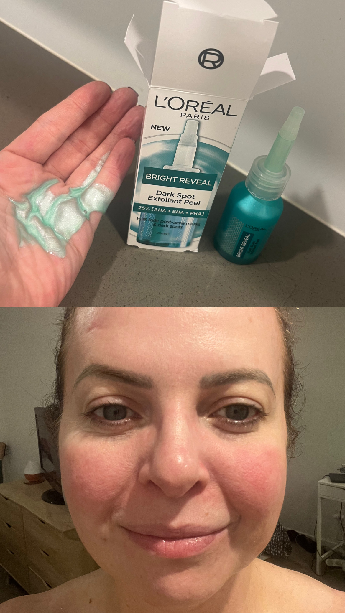 L'Oreal Paris Dark Spot remover ... The cream goes on very smooth and feels good to the skin. Takes about two weeks to notice improvement. Helpful?