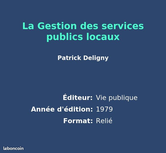 La Gestion des services publics locaux - Livres - Leboncoin