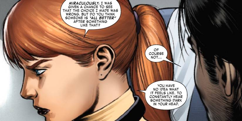 Renouncing her costumed identity, Patsy Walker decided to marry Hellstrom. The couple was married in Greentown, Ohio, where Patsy's father resided at the time.