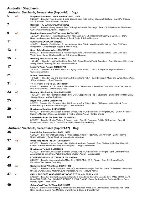 James lives in the USA with Heather Moyer [Sunnyrain Aussies] and Patti Herold [Snowbelt Aussies]. Bruce is a very friendly dog and we have high ...