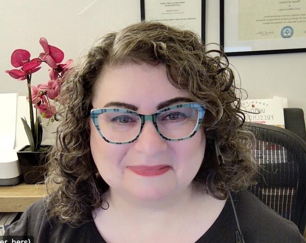 Patty DeVries presents "Finding Equilibrium" at the 2024 Staff PD Retreat.