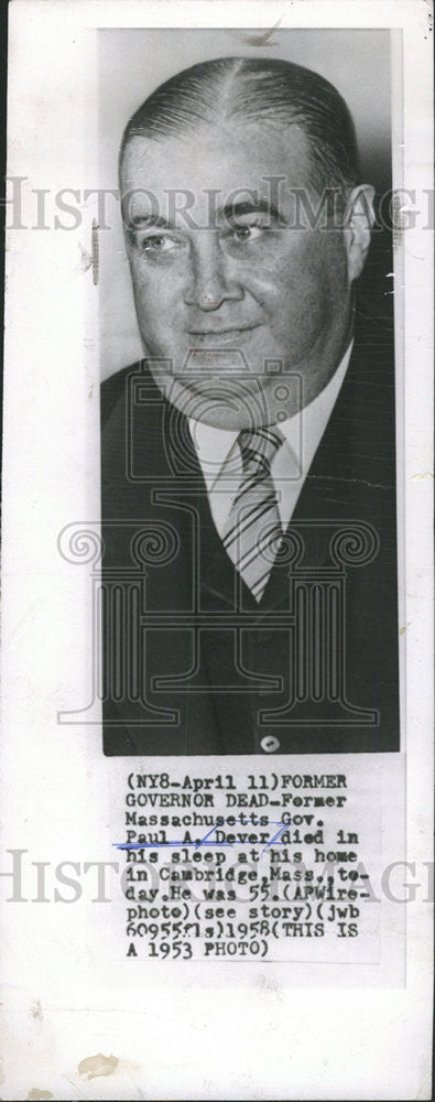 Paul Dever. 58th Governor of Massachusetts. In office. January 6, 1949 ... Paul Dever was born in Boston, Massachusetts to two Irish immigrants, Joseph ...