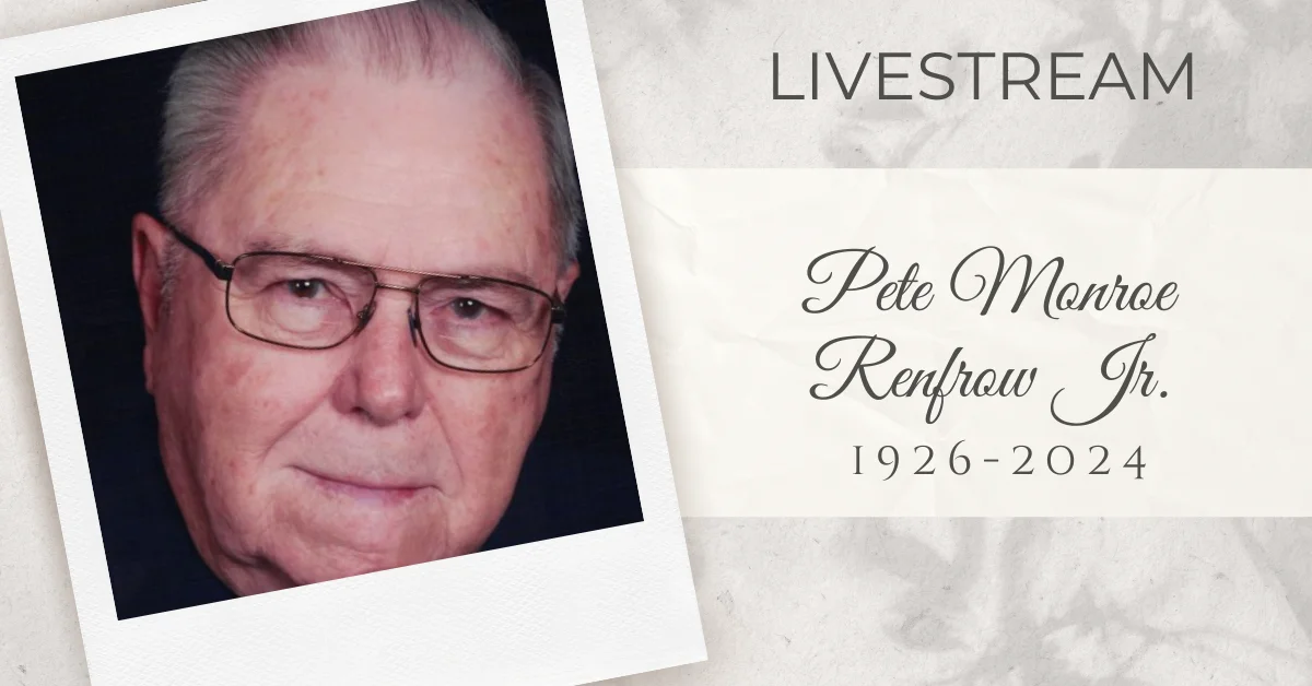 Pete Monroe Renfrow, Jr., age 98, was called home to the Lord on September 12, 2024. Pete left us peacefully, surrounded by family, leaving behind a legacy ...