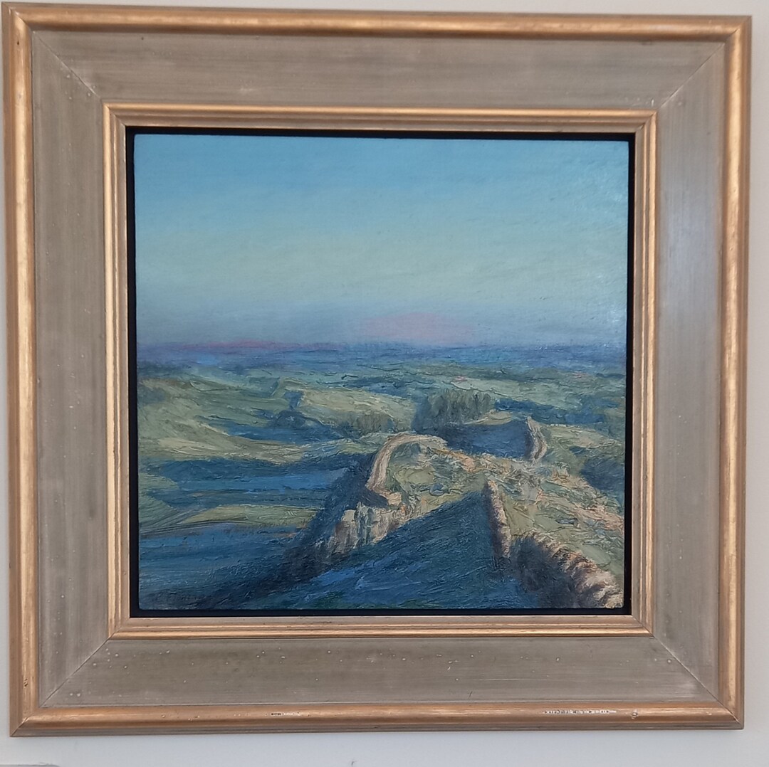 Highlights ... Beautiful and evocative oil painting by renowned UK artist Peter Flannagan. Looking east over a section of Hadrian's Wall in Northumberland.