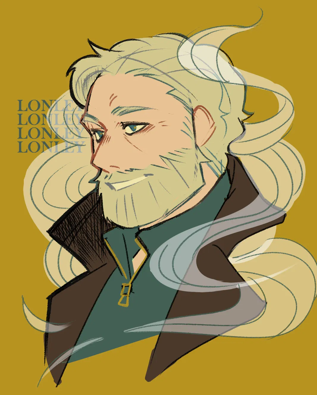 ID: A loose drawing of Peter Lukas from TMA. He is an older man with salt and pepper hair, wearing a scratchy looking sweater, enveloped by ...