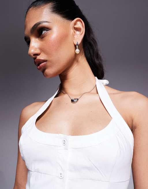 Princess Polly cotton eyelet low back shirred top in white - ASOS