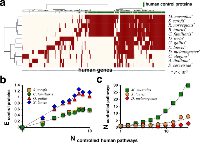 Controllability analysis of molecular pathways points to proteins that control the entire interaction network