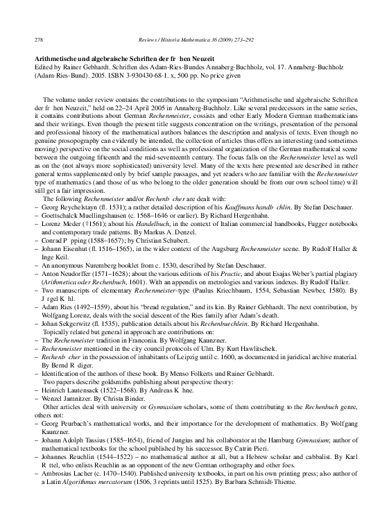 Rainer Gebhardt, Editor, Arithmetische und algebraische Schriften der frühen Neuzeit, Schriften des Adam-Ries-Bundes Annaberg-Buchholz vol. 17, Adam-Ries-Bund, ...