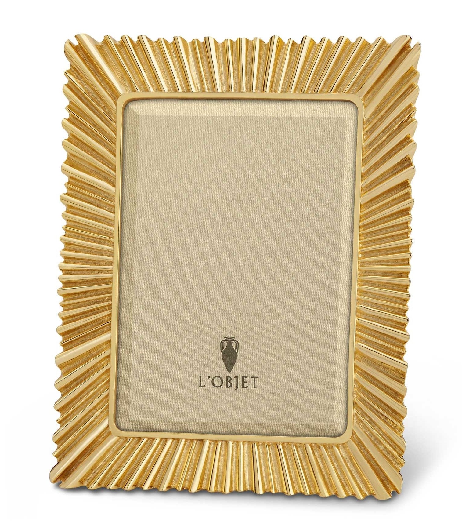 L'Objet I Ray Frame 4 x 6. A bold, luxurious picture frame design meticulously handcrafted with 24K gold plating, beveled glass, satin lining and Italian ...