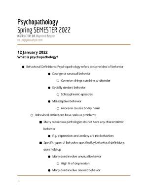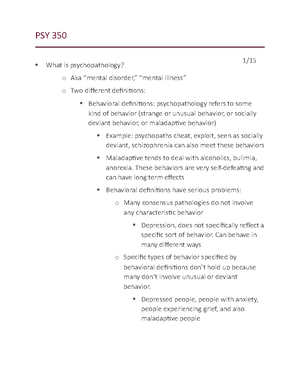 Raymond Bergner psy 350 what is psychopathology? aka two different definitions: behavioral definitions: psychopathology refers to some kind of behavior (