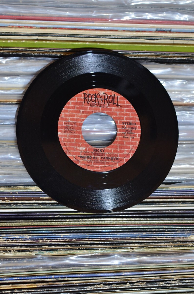 "Weird Al" Yankovich 'Ricky'/'Buckingham Blues' 7inch single ... get now! Excellent vinyl single. Plays very well, with just a possible touch of surface noise.