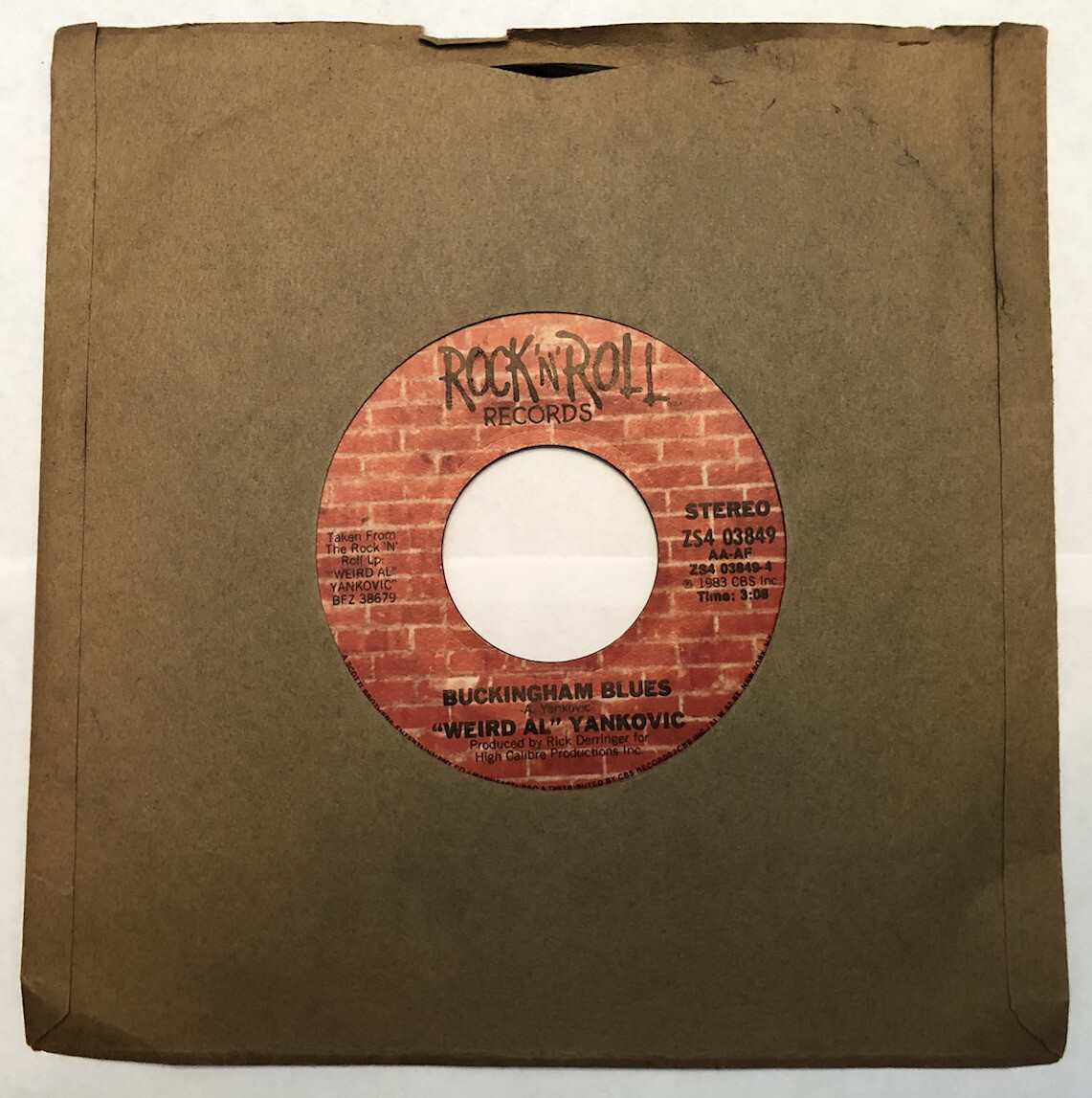 Ricky / Buckingham Blues, a Single by "Weird Al" Yankovic. Released 3 May 1983 on Rock 'n' Roll (catalog no. ZS4 03849; Vinyl 7"). Genres: Musical Parody.