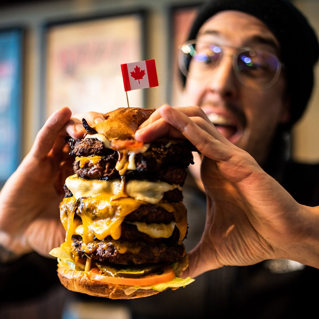Our famous Great Canadian Burger Challenge (formerly the Rita Burger Challenge) – a giant six-patty burger with all the fixings served with a large poutine – was swiftly and ruthlessly conquered on March 23, 2024!