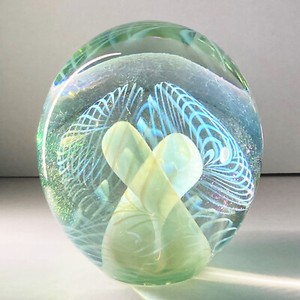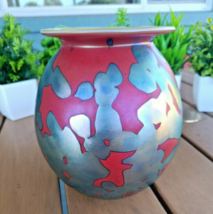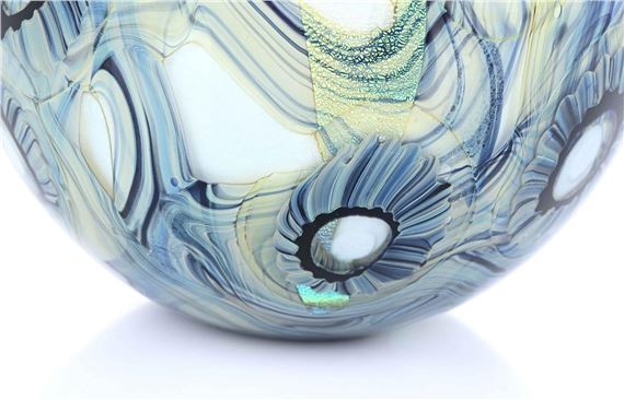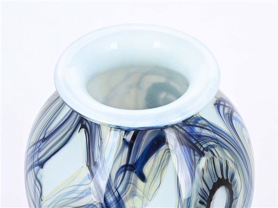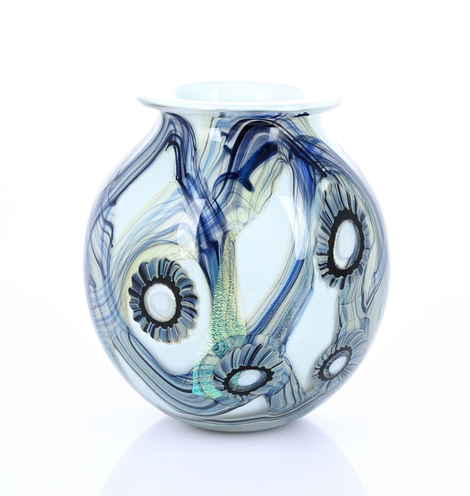 Early 21st century Robert Eichholtz art glass seascape vase in tones of blue with iridescent highlights, signed, 18 cm, tiny bruise to base. Early 21st ...