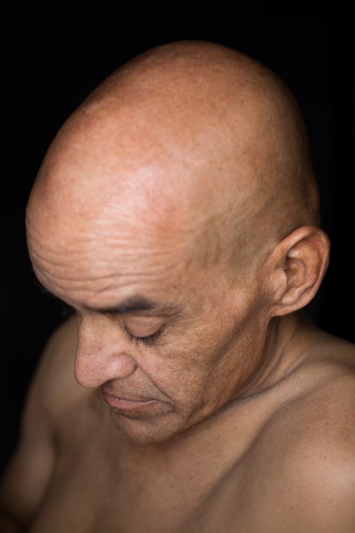 Robert Houser's portraits spotlight cancer patients as they reveal hair loss and scars