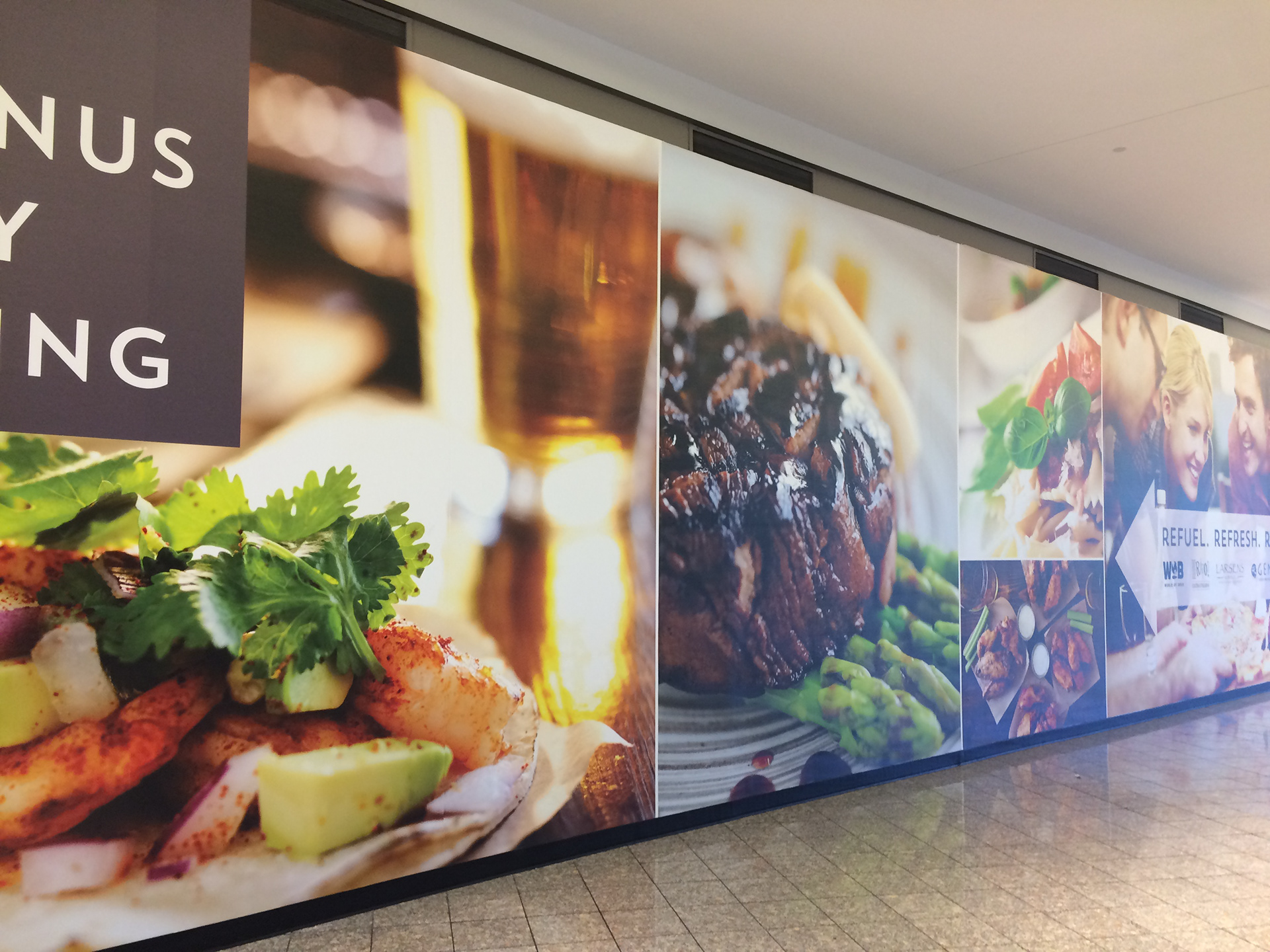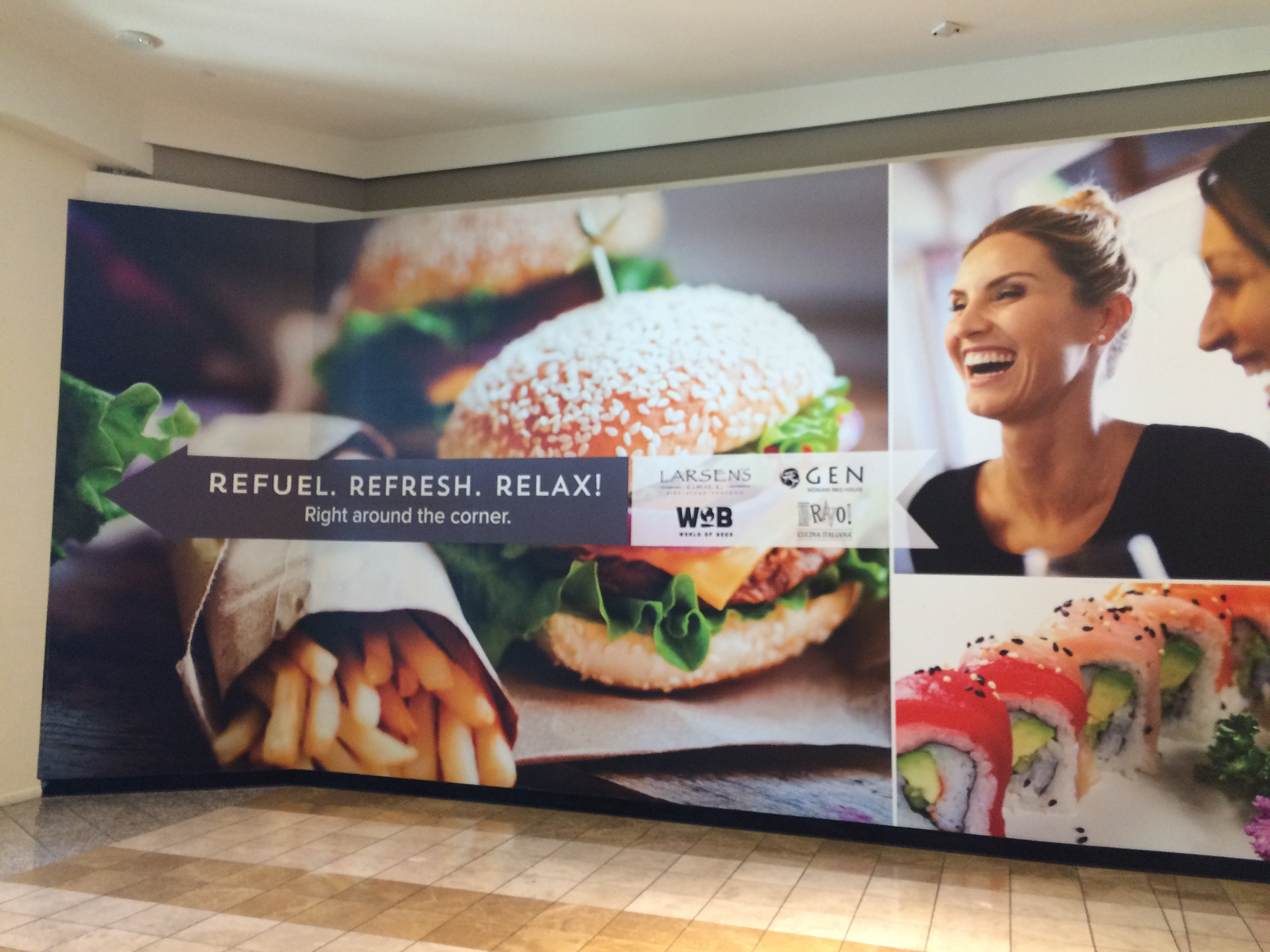 Roberta Cope. Refuel. Refresh. Relax. MALL BARRICADE. Mouthwatering food + good times with friends is winning combination in this wall barricade for Galleria ...