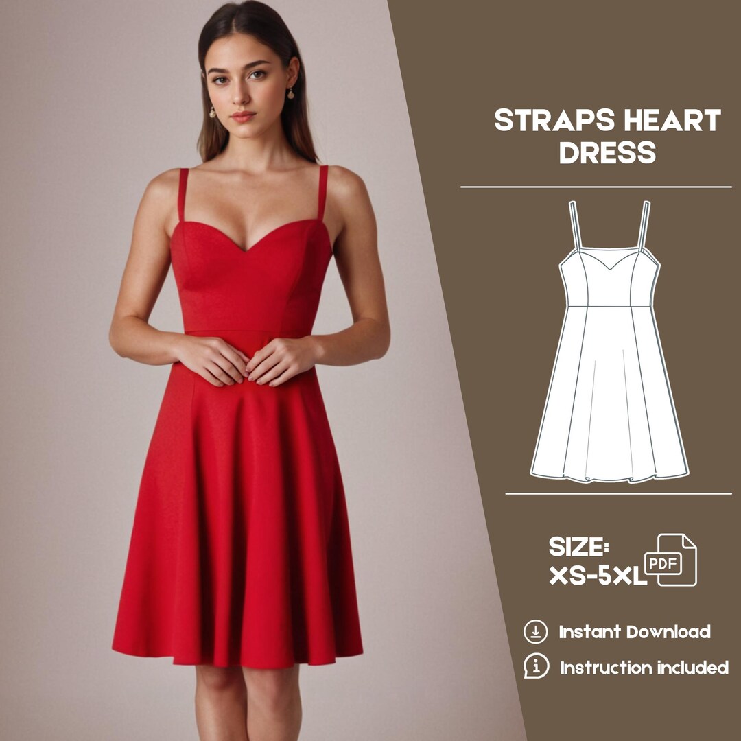 Heart Dress Sewing Pattern, Knee Ruffle Dress PDF Pattern, Straps ...