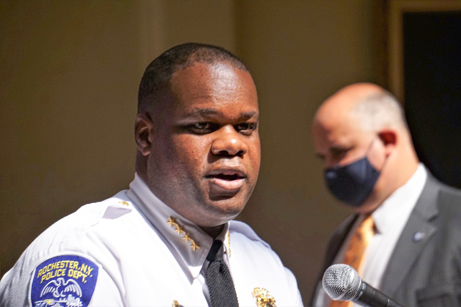 Rochester Police Department Chief La'Ron Singletary speaks to the media during a 2019 news conference, a year before nightly protests over the city's ...