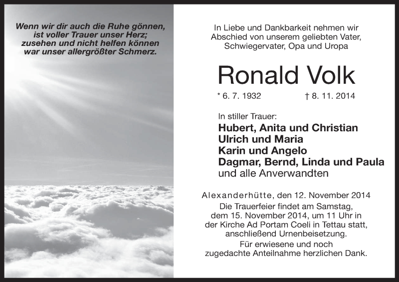 Ronald Volk (1933-2015) | Obituary - We Remember
