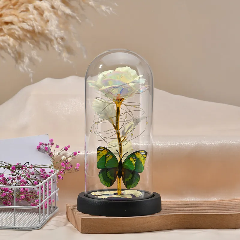 Tcwhniev Rose Light Artificial Galaxy Rose Lamp with Butterfly and Colorful LED Rose Flowers In Glass Battery Powered Gifts for Women Girls for Wedding ...