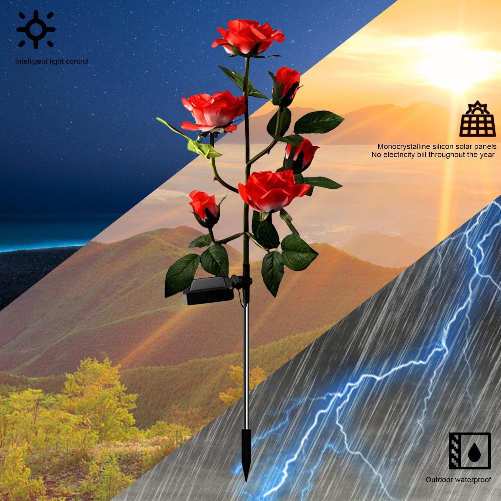 Outdoor Realistic Solar Powered Rose Flower Lights Stake2 Pack 10 Rose Solar Gar ; Item number. 315685049993 ; Color. Red ; Type1. Type1 ; Accurate description. 5.0.