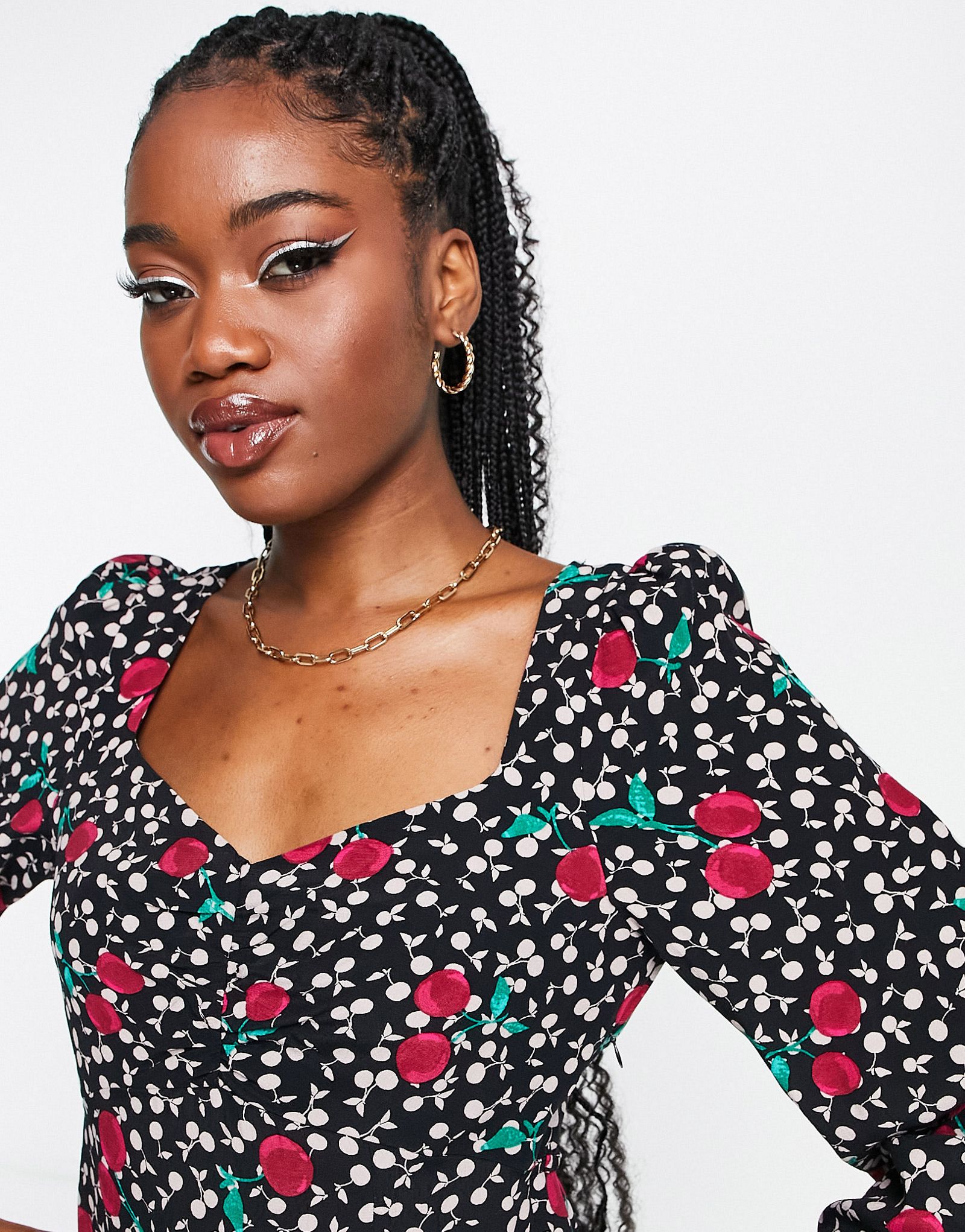 Shop the latest Nobody's Child Rosie cherry & spot print midi dress in black trends with ASOS! Free delivery and returns (Ts&Cs apply), order today!