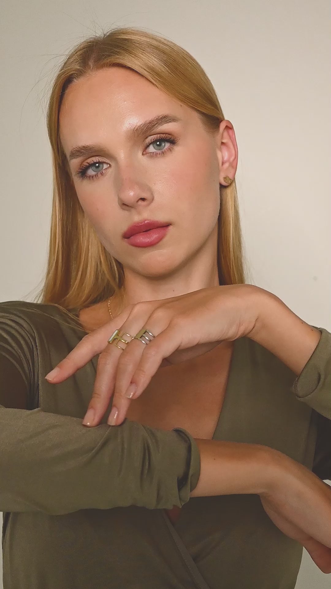 Our Sabrina Ring features a triple-band design linked for seamless stacking. Modern, versatile, and effortlessly chic—wear it solo or combine it with your other ...
