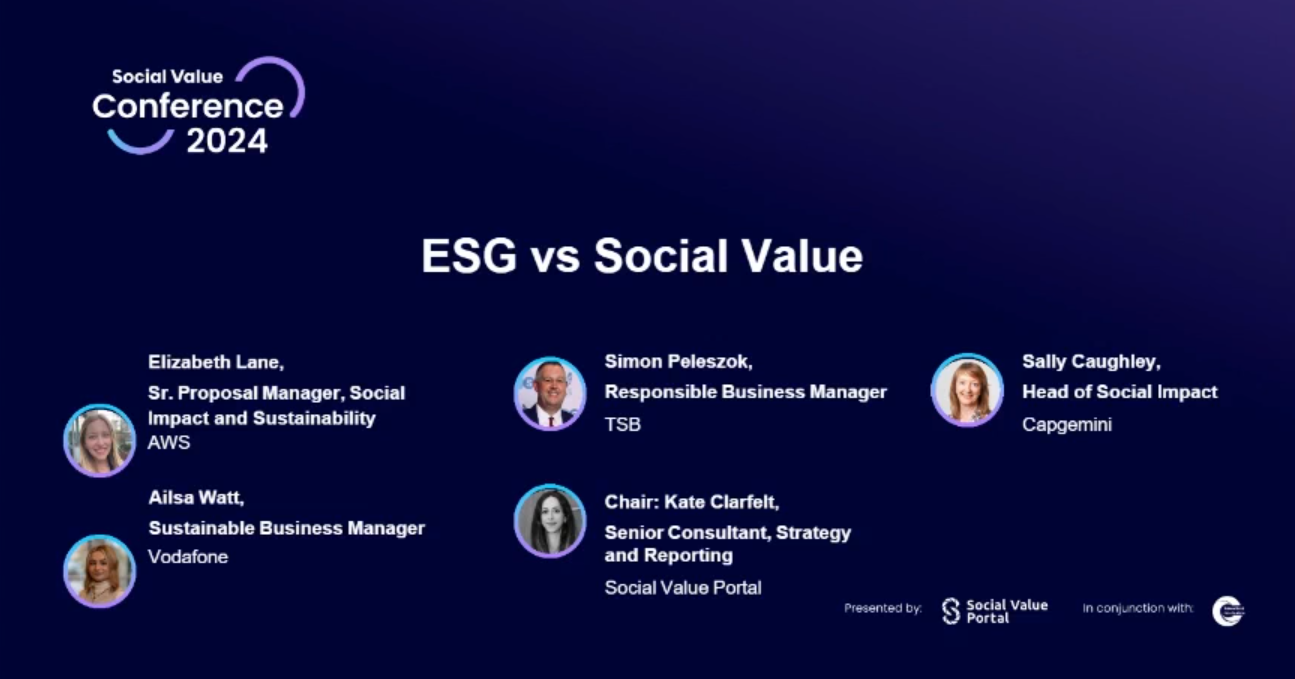 Sally Caughey, Capgemini; Ailsa Watt, Vodafone; Chair: Kate Clarfelt, Social Value Portal. This is a recording was made at the Social Value ...