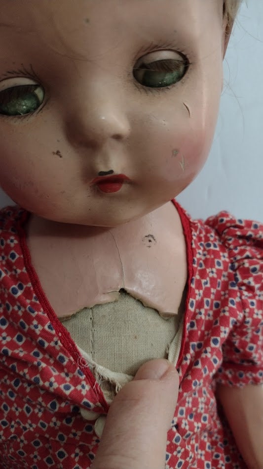 Marks: Petite American Character. Comments: circa 1930, American Character, the doll was marketed as "Sally Joy". Value Points: pretty child with original ...