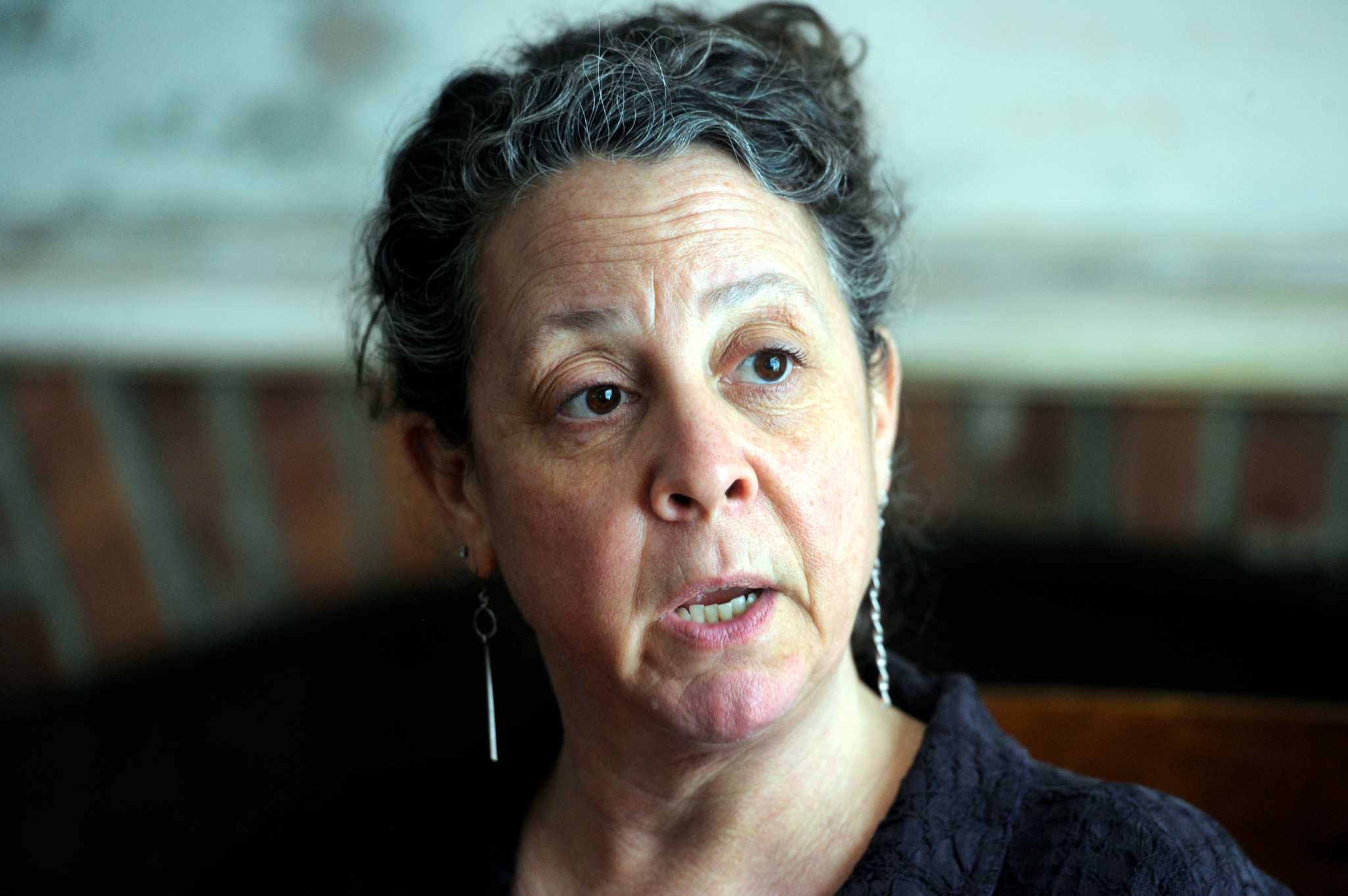 Chris Hoagland, Sam Hoagland and Lori Hoagland sit at a table. ... A police cruiser is parked in front of the Newtown Police Department building.
