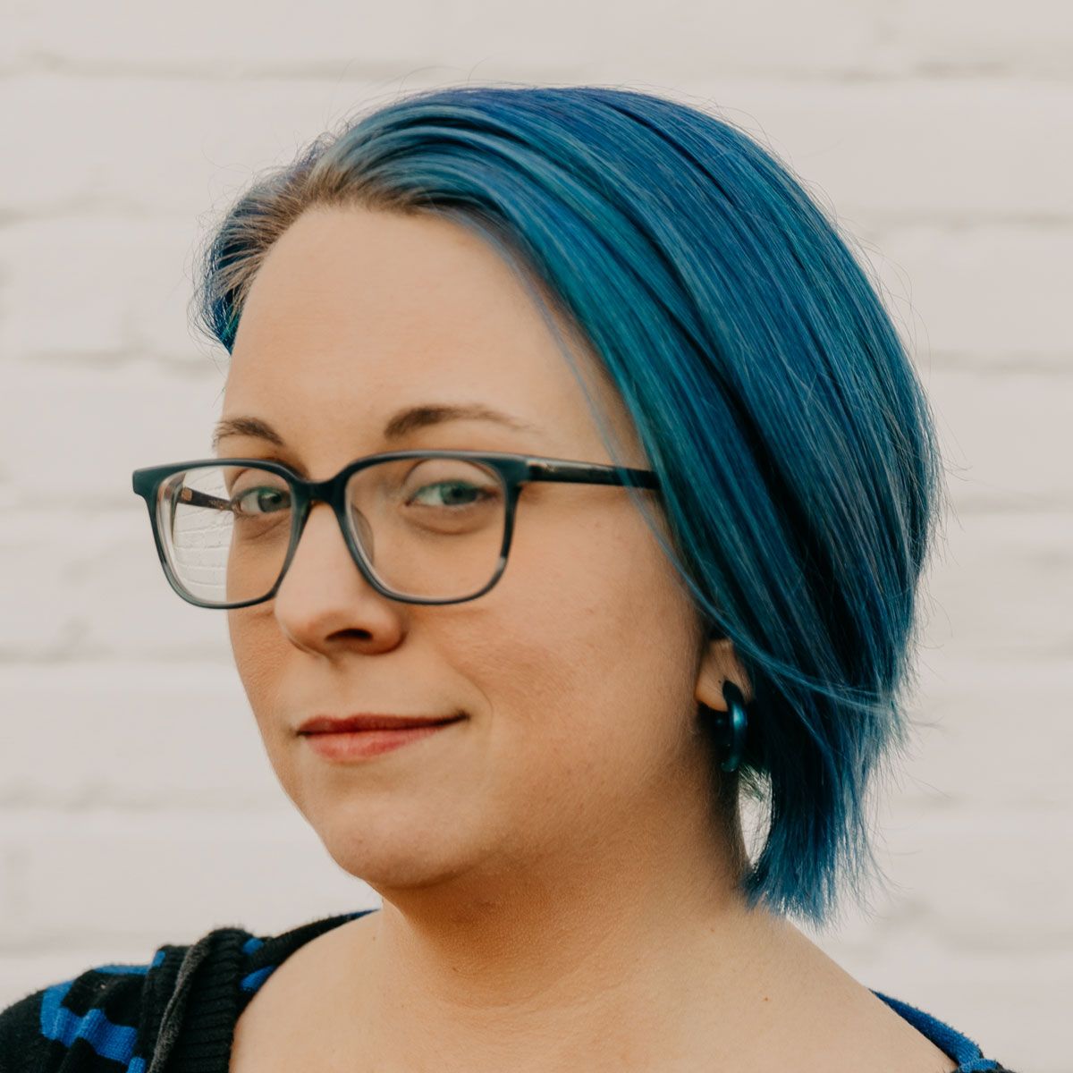 Blue hair, brown dog, bug enthusiast.