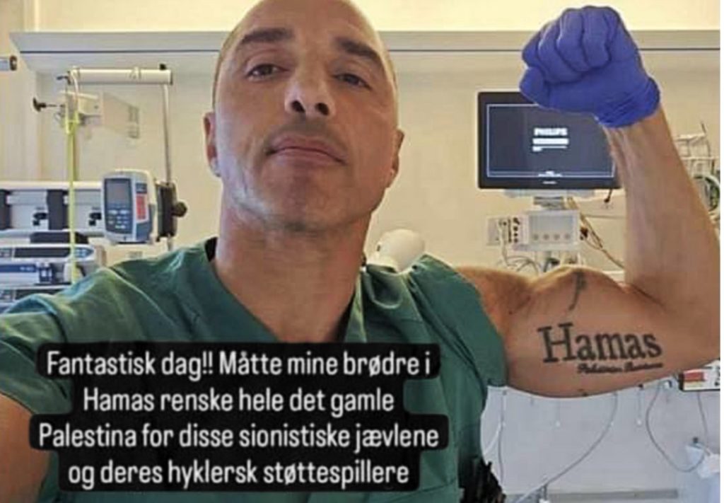 Nurse in Norway proudly flexes Hamas tattoo in hospital