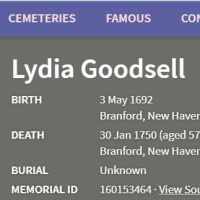 Discover life events, stories and photos about Sarah Goodsell (1688–1745) of Branford, New Haven, Connecticut Colony, British Colonial America.
