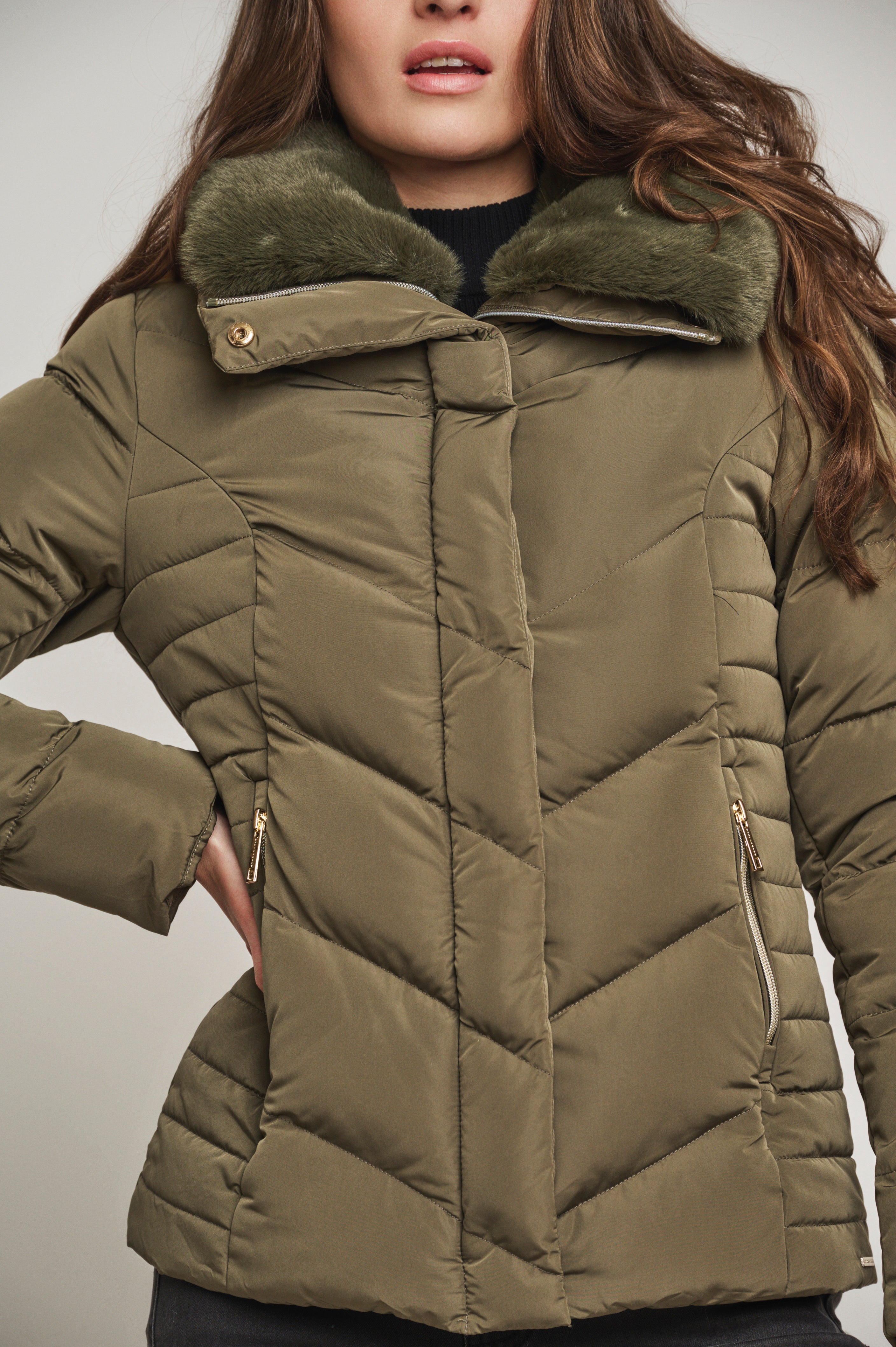 Selma hunter short jacket with fake fur collar - Jessimara
