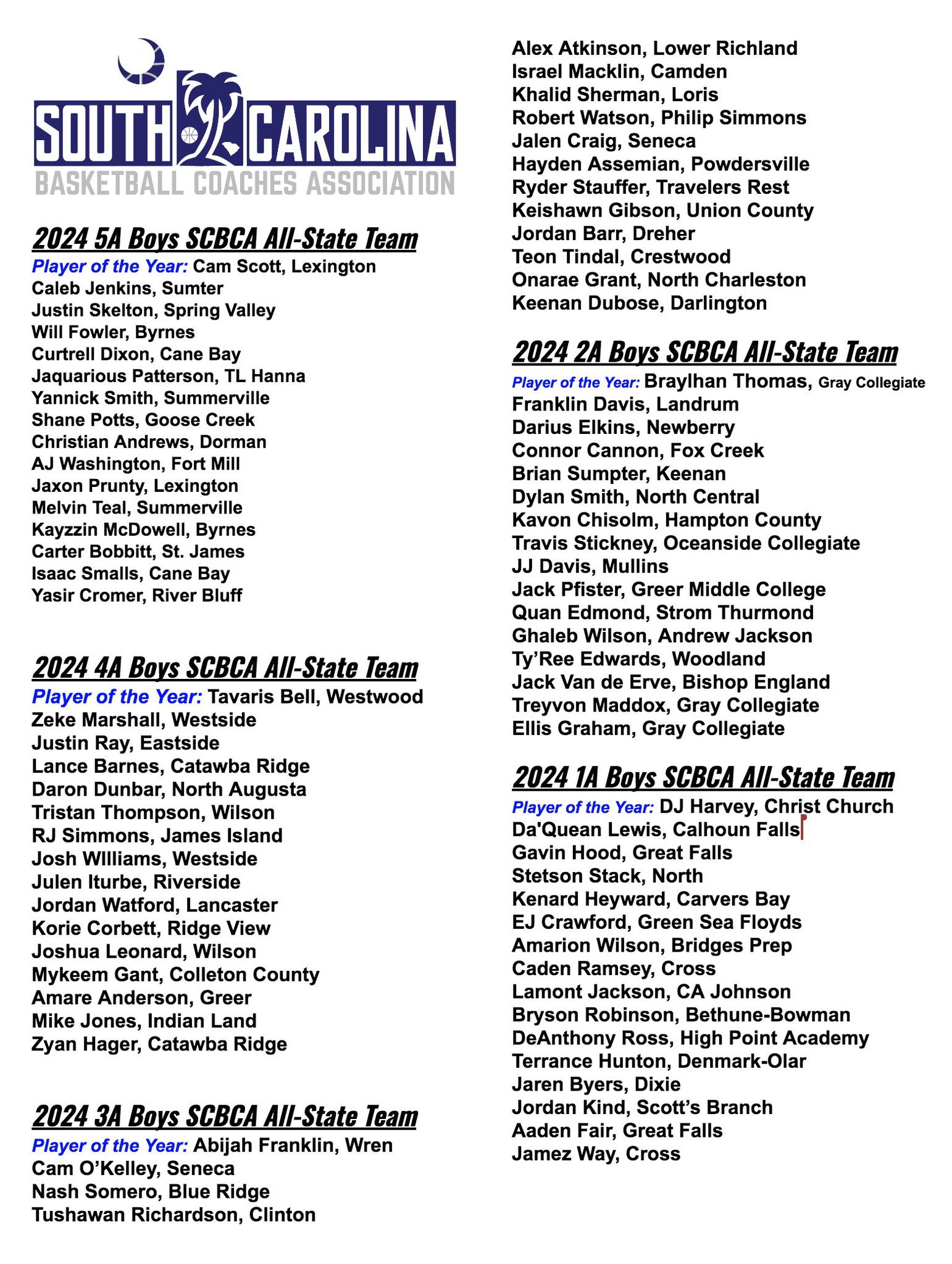 SC high school basketball all-state teams announced. See which players made the lists