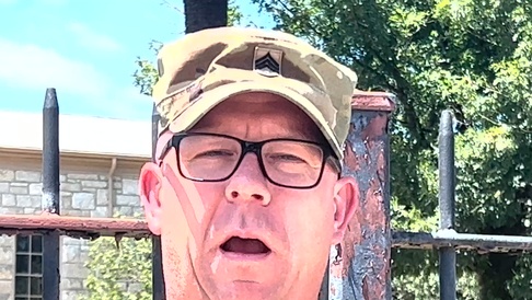 U.S. Army Sgt. 1st Class Seth Barham with U.S. Army North, Fifth Army, sends a special message to their loved ones back home for Independence Day.