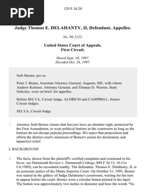 Seth BERNER, Plaintiff, Appellant, v. Judge Thomas E. DELAHANTY, II, Defendant, Appellee. . Heard. Court, U.S. Court of Appeals — First Circuit. Page 20. 129 F ...