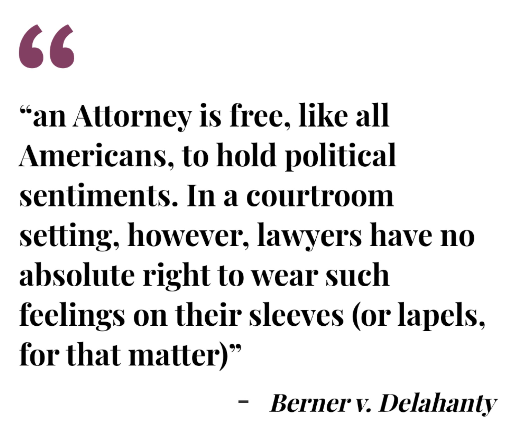 Attorney Seth Berner claims that lawyers have an absolute right, protected by the First Amendment, to wear political buttons in the courtroom.