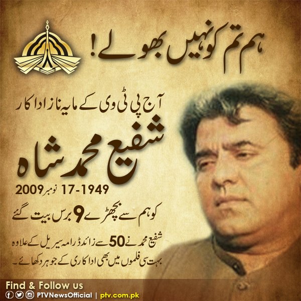 Shafi Muhammad Shah (Urdu: شفیع محمد شاہ) PP (7 September 1949–17 November 2007), commonly known as Shafi Mohammad, was a Pakistani film and television ...
