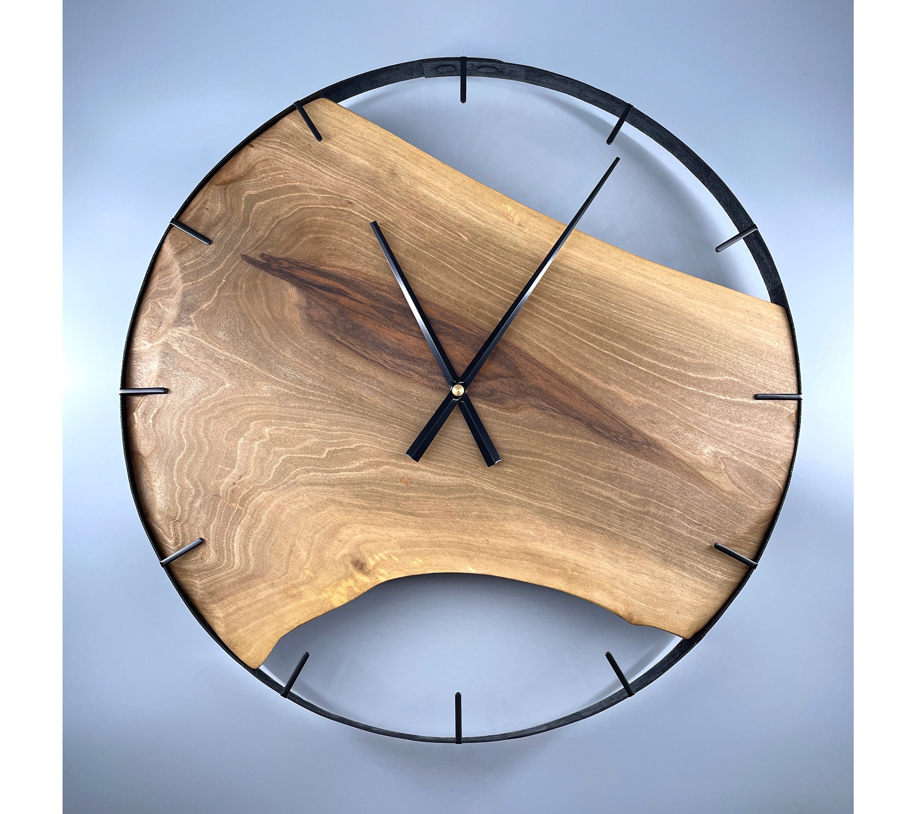 Oak Live Edge Wall Clock 60cm / 24 Inch Circle Aluminium Frame in ...